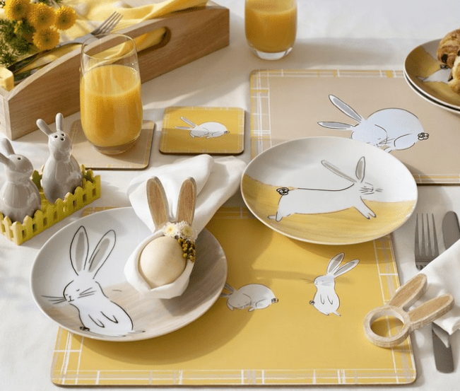 Eat your delicious Easter meal on the cutest kitchen accessories! Such as this set of four Bunny Side Plates (£12), Placemats and Coasters (£12), Bunny Salt and Pepper Set (£10), Napkin Rings (set of 2 is £6) and lots more!