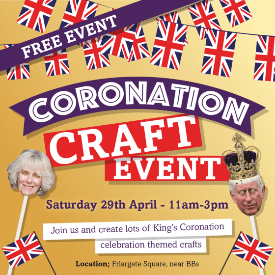 Free Coronation Craft Posted: Wednesday 19th April Join us on the 29th April, 11am-3pm for our...